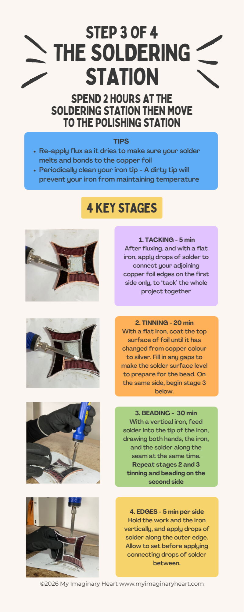 I’ve started creating resources for my workshop buddies to take home. The first attempt shared here is part of a series for the copper foil technique. It was created according to the TEACCH method for activity systems and acts as a back-up resource for a group demonstration involving verbal instructions. I am currently completing the whole set and will create a resources page on the site where they can live for a bit until they need updating.